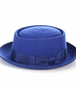 The Royal Blue Wool Felt Pork Pie Hat, a timeless accessory that combines elegance and style. Crafted from premium fur felt, this hat features a distinctive flat crown and a narrow brim, providing a sophisticated yet casual look.