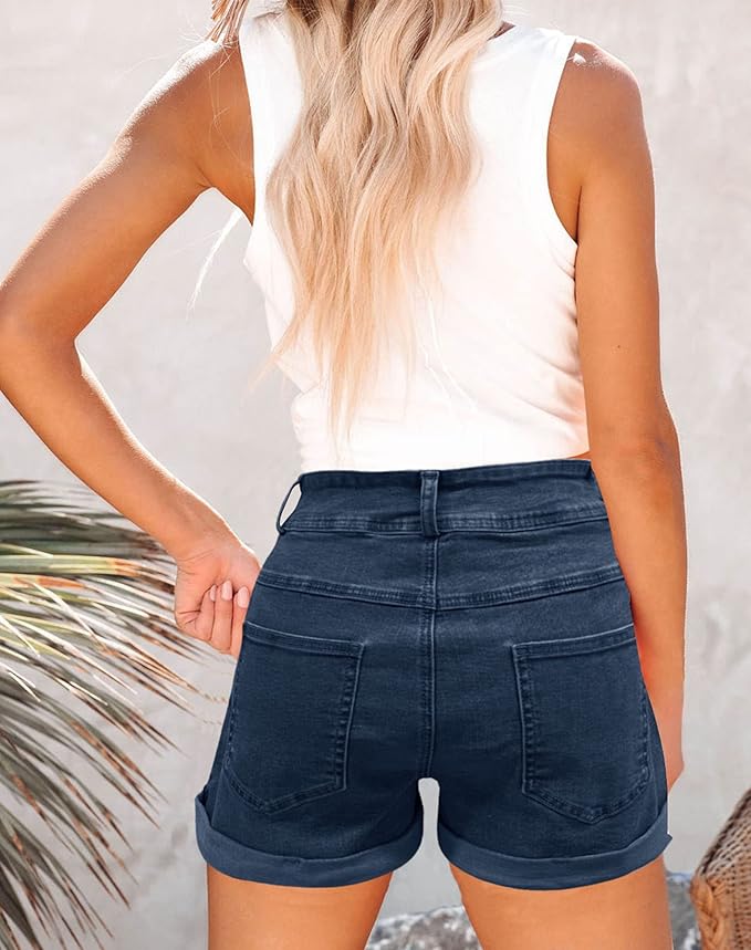 - High Rise, 4 Pockets, Cuffed Short Hem, Front Zipper and Button Closure
