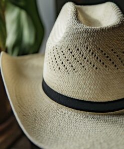 Stylish Quality Straw Cowboy Hat, designed for those who appreciate both elegance and functionality. This hat features a classic Cattleman crown that stands at 4 1/4 inches, providing a timeless silhouette that complements any outfit. The brim measures a generous 3 1/2 inches, offering ample shade and protection from the sun.